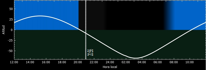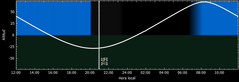 Gráfica de altura vs tiempo para planeta Neptuno para el día 15 de octubre de 2025. Fuente: Software Kstars https://edu.kde.org/kstars/