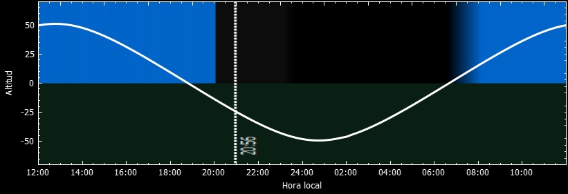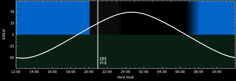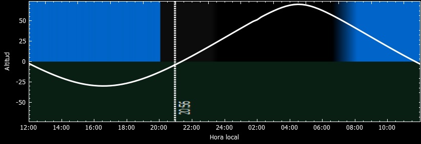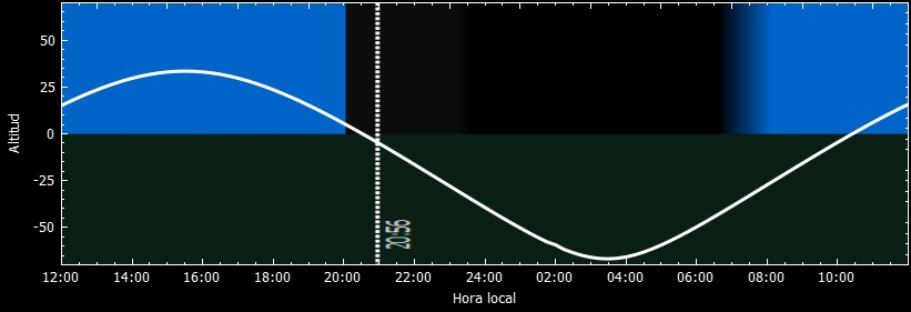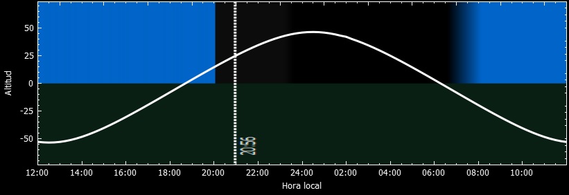 Gráfica de altura vs tiempo para planeta Marte para el día 15 de octubre de 2025. Fuente: Software Kstars https://edu.kde.org/kstars/