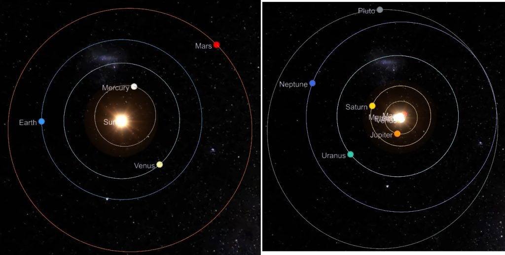 SISTEMA SOLAR (Información en texto de esta sección se ha consultado con software Stellarium https://stellarium.org/)