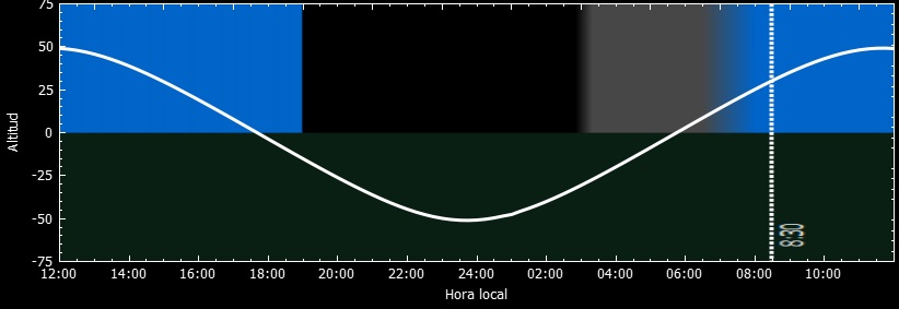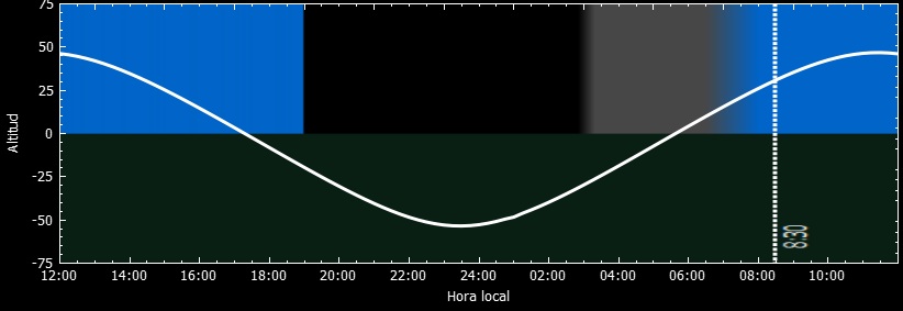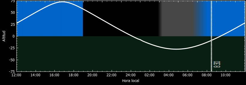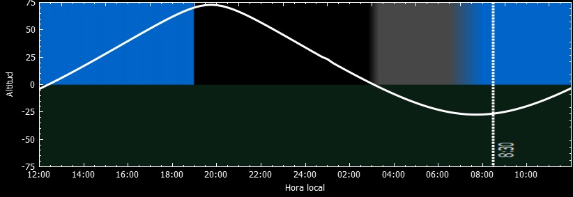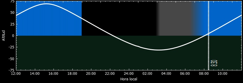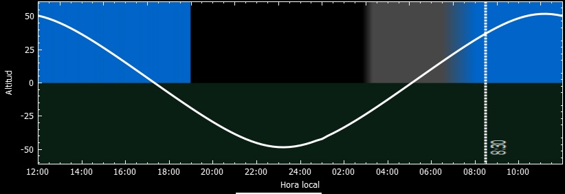 Gráfica de altura vs tiempo para planeta Neptuno para el día 15 de abril de 2025. Fuente: Software Kstars https://edu.kde.org/kstars/