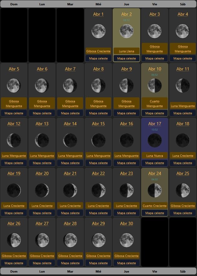 | JUEVES | 02/04/2026 | Luna llena. | 04:11 |