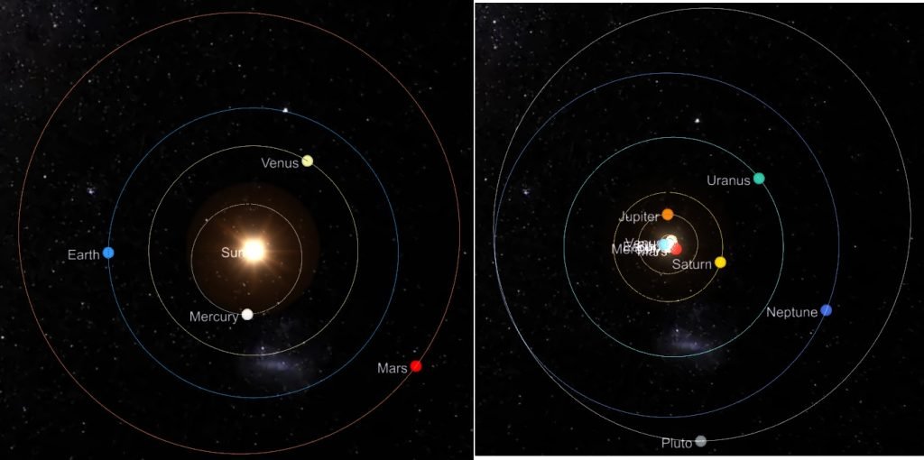 SISTEMA SOLAR (Información en texto de esta sección se ha consultado con software Stellarium https://stellarium.org/)