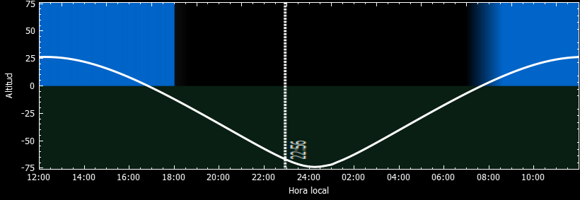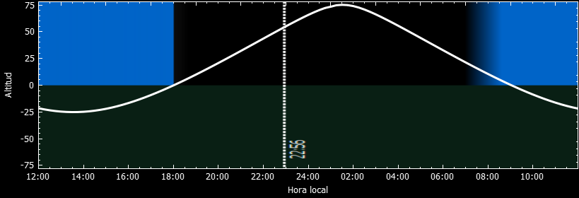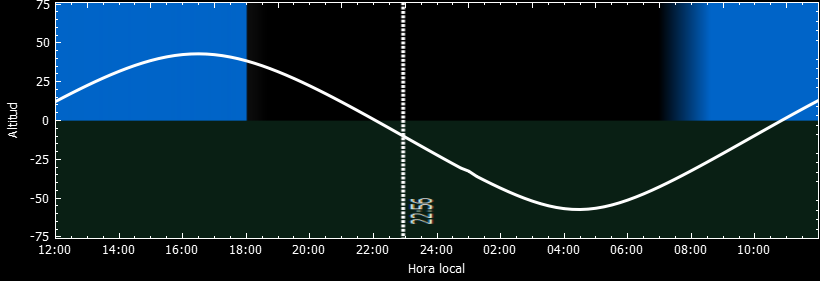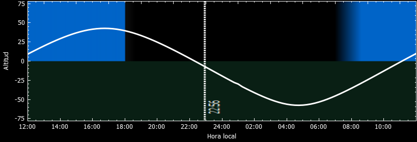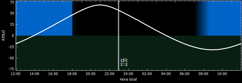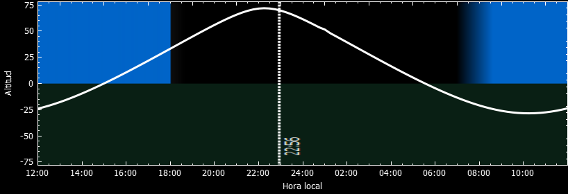 Gráfica de altura vs tiempo para planeta Neptuno para el día 15 de enero de 2025. Fuente: Software Kstars https://edu.kde.org/kstars/