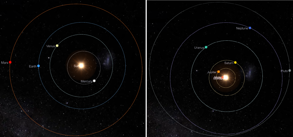 SISTEMA SOLAR (Información en texto de esta sección se ha consultado con software Stellarium https://stellarium.org/)
